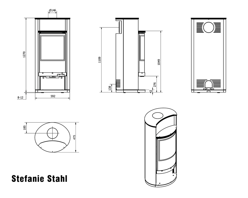 • schwarzer Stahlkorpus, schwarzer Brennraum aus Termotec
